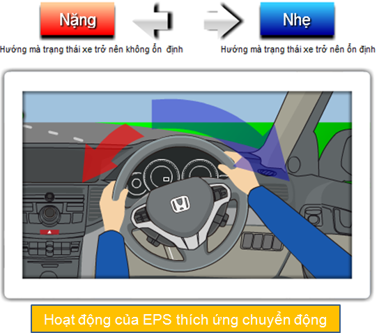 EPS Thích ứng Chuyển động là một hệ thống có chức năng làm ổn định chuyển động của xe bằng cách điều khiển mô-men trợ lực hệ thống lái của EPS khi xe đi trên bề mặt đường trơn trượt kết hợp với chức năng điều chỉnh tốc độ bánh xe của mô đun điều khiển VSA.